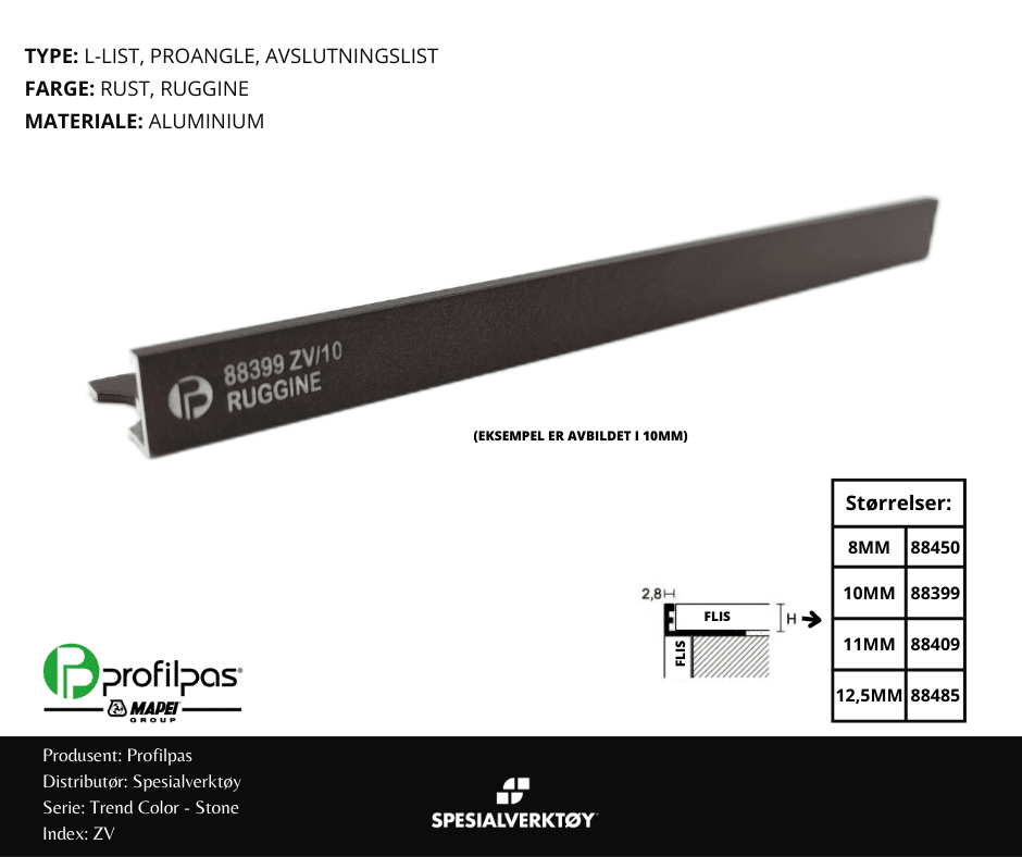 - AVSLUTNINGSLIST ZV/10 STONE ALUMINIUM RUST 10MMX270CM, PROFILPAS