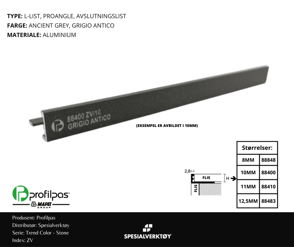- AVSLUTNINGSLIST ZV/8 STONE ALUMINIUM ANCIENT GREY 8MMX270CM, PROFILPAS