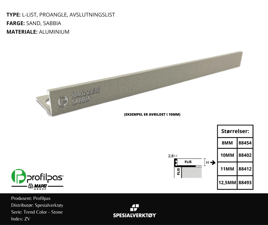 Trend Color Stone Farge: Sand, Sabbia Størrelse: 8MM L: 270 CM Materiale: aluminium Produsert i Italia.
