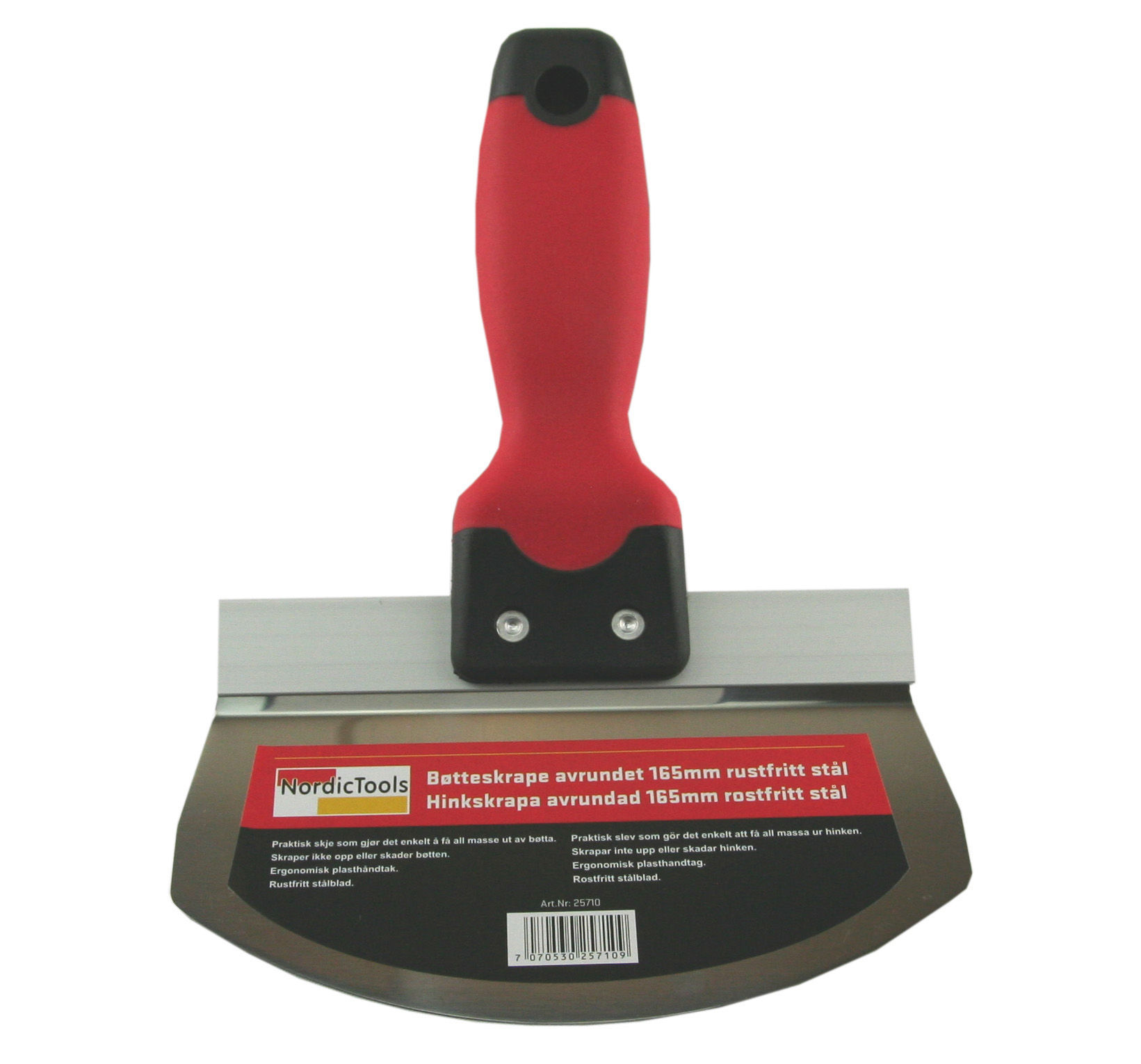 Praktisk bøtteskrape som gjør det enkelt å få all masse ut av bøtten.