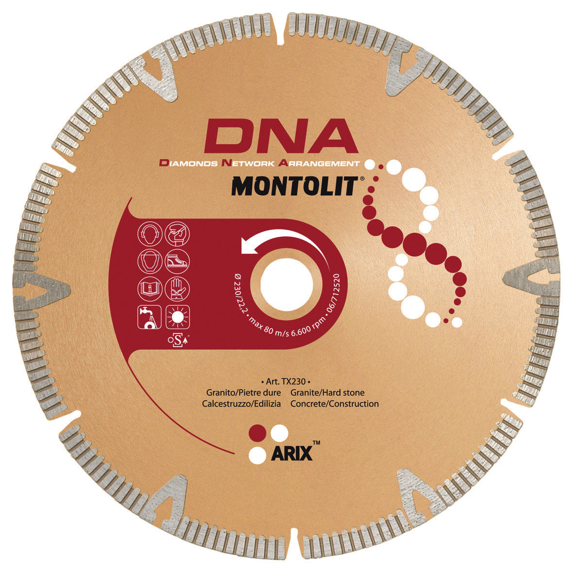 DNA-teknologi: en revolusjon innen produksjon av diamantblader. Alle diamantkorn har samme form og posisjon, det er like mange korn i hvert punkt på diamantringen. DNA-teknologi har funnet den mest gunstige plasseringen av kornene i diamantringen for hvert materialkuttet.