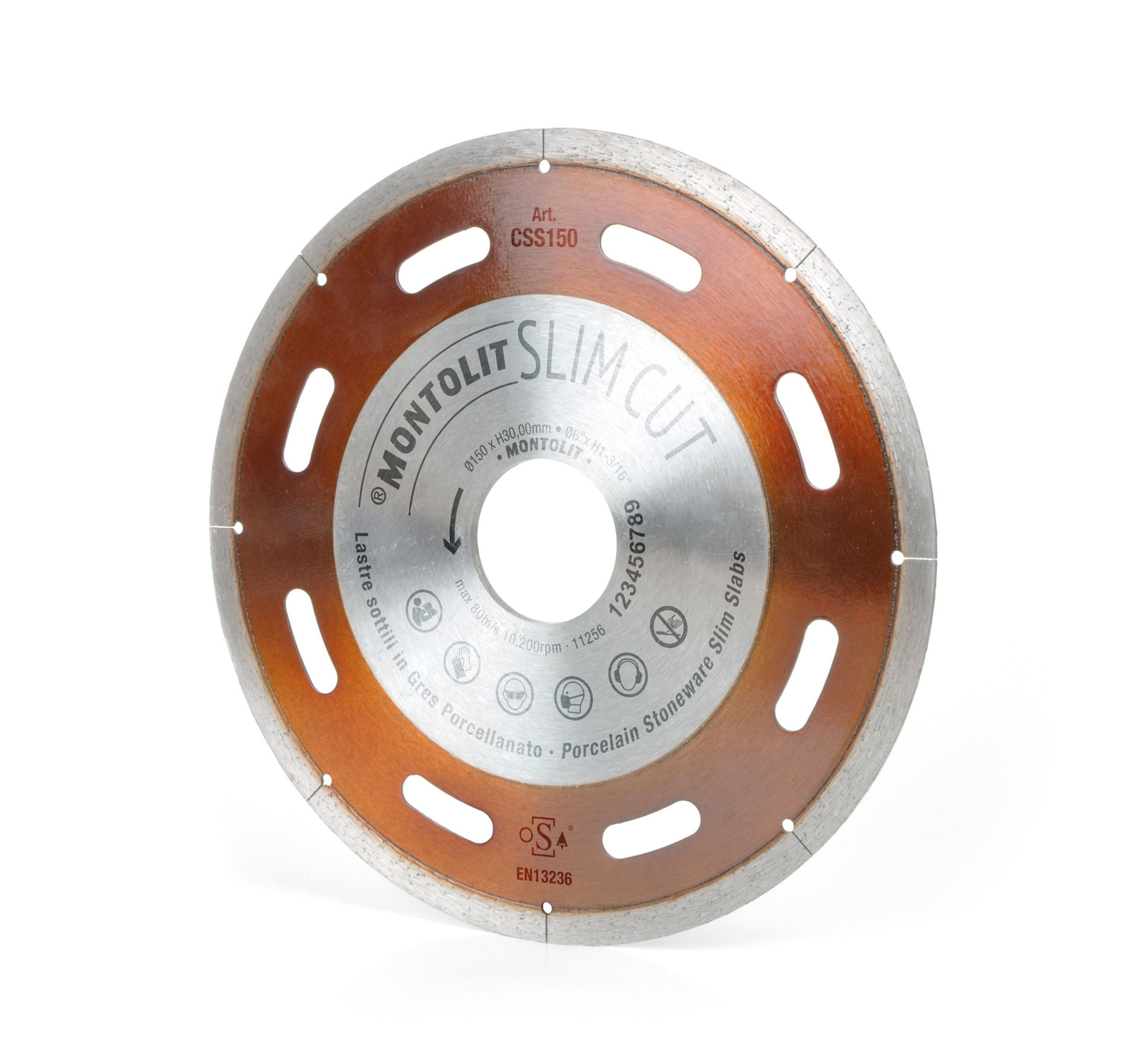‘SLIM CUT’ diamantskjæreblad art. CSS spesielt utviklet for tynne plater og ren skjæring. Tilgjengelig i 100 og 150 mm diameter; den første brukes med TUTORCUT (100 mm) det patenterte og eksklusive føringssystemet for å oppnå perfekte kutt uten å skade bladene. Diameteren på 150 er designet for Moto Flash Line, det motoriserte systemet for å kutte store plater opp til 20 mm tykkelse. Det er den eksepsjonelle tynnheten til disse bladene som tillater presise og raske kutt, fri for spon på tynne plater