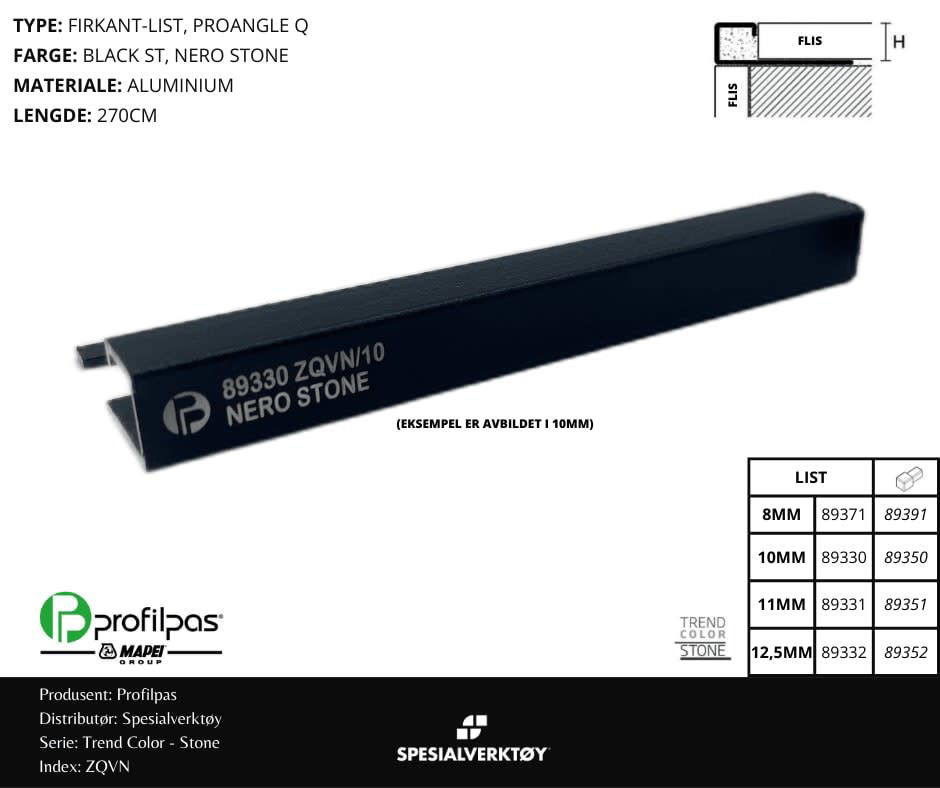 - HJØRNELIST FIRKANT ZQVN/10 STONE ALUMINIUM BLACK ST 10MMX270CM, PROFILPAS
