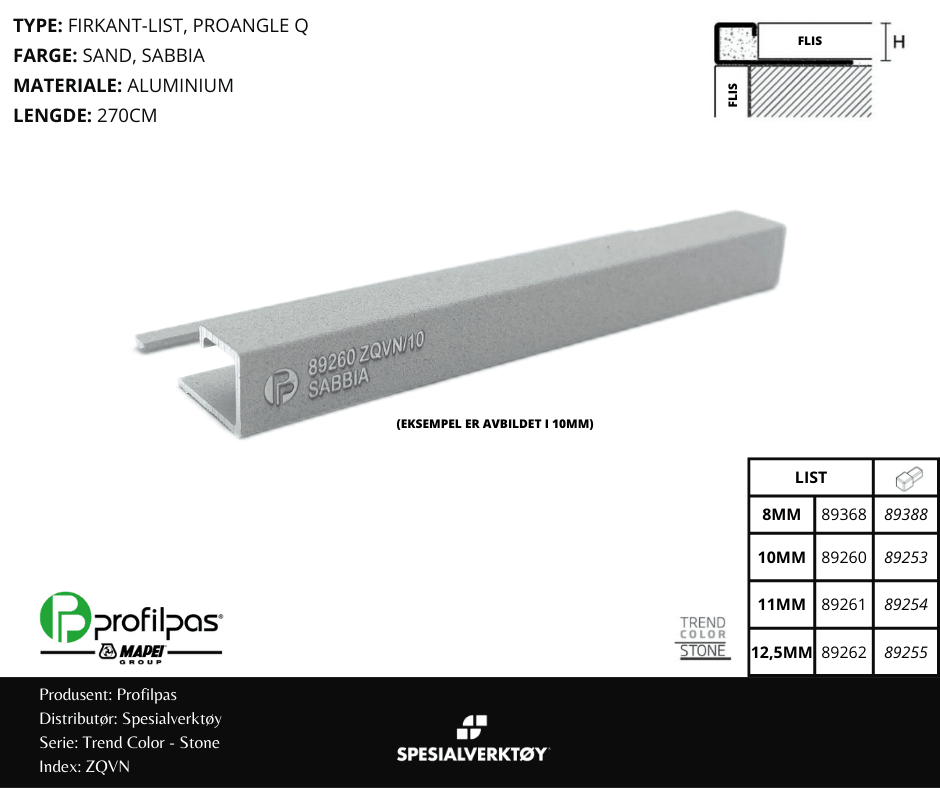 Trend Color StoneType: Firkantlist, Proangle QFarge: Sabbia, SandStørrelse: 8MM