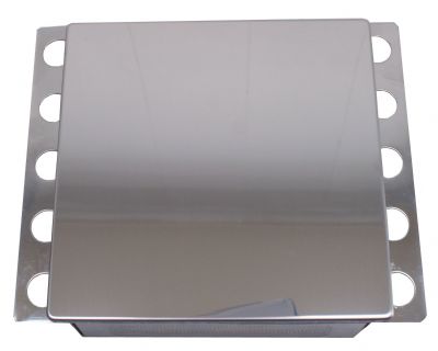 Inspeksjonsluke i rustfritt kromstål AISI 430, godstykkelse 1mm. Blank front som holdes på plass i rammen av 2 justerbare magneter.