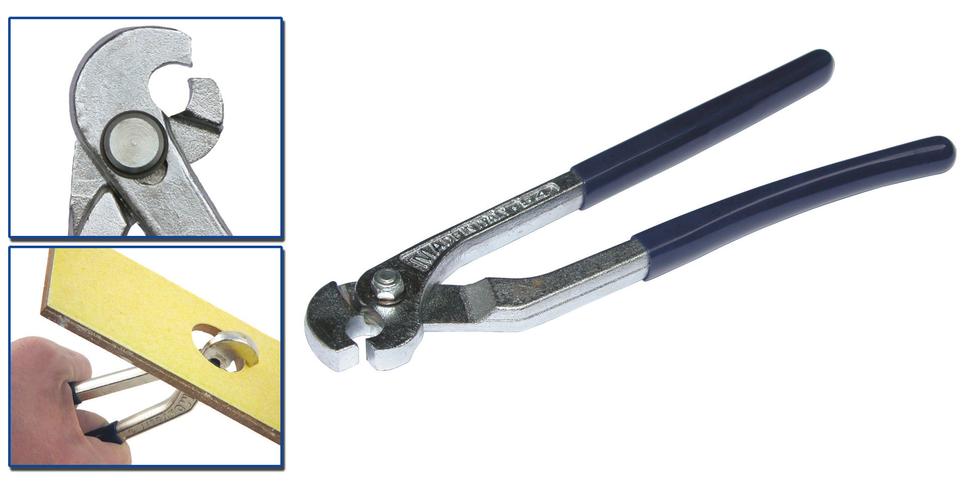 Takket være det justerbare "nebbet" kan verktøyet tilpasses materialer av ulik tykkelse samtidig som det er ergonoisk avstand mellom håndtakene. Den har et kompakt hode for enkelt tilgang, selv for små hull.