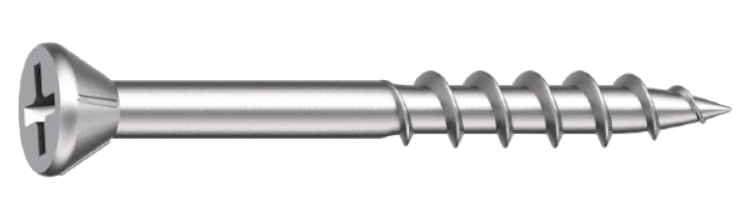 Ideell skrue for innfestning av kryssfiner og sponplater til trestendere.